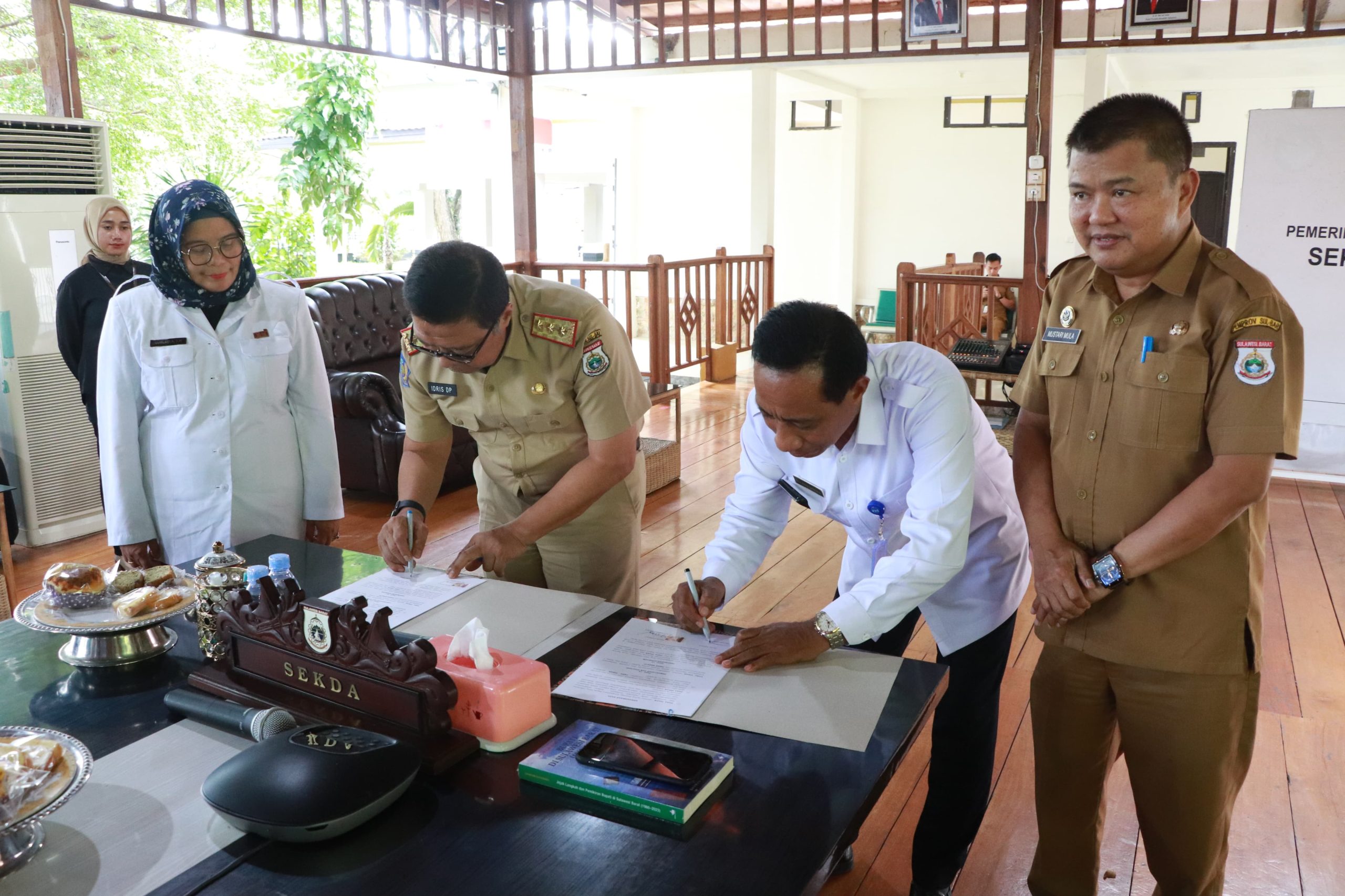 Penandatangan MoU Pemrov Sulbar dan RRI berlangsung di Rumah Jabatan Sekprov Sulbar, Senin (20/11/2023).