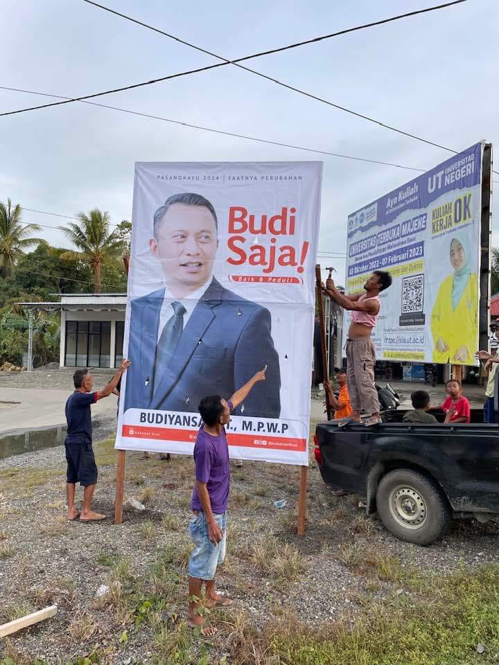 Pasangkayu, 8enam.com.-Awal tahun 2023, baliho Budiyansa yang digadang-gadang maju pada Pemilihan Kepala Daerah (Pilkada) serentak 2024 di Kabupaten Pasangkayu, Provinsi Sulawesi Barat (Sulbar), terlihat terpasang di beberapa titik ruas jalan Kabupaten paling utara di Sulbar ini.