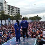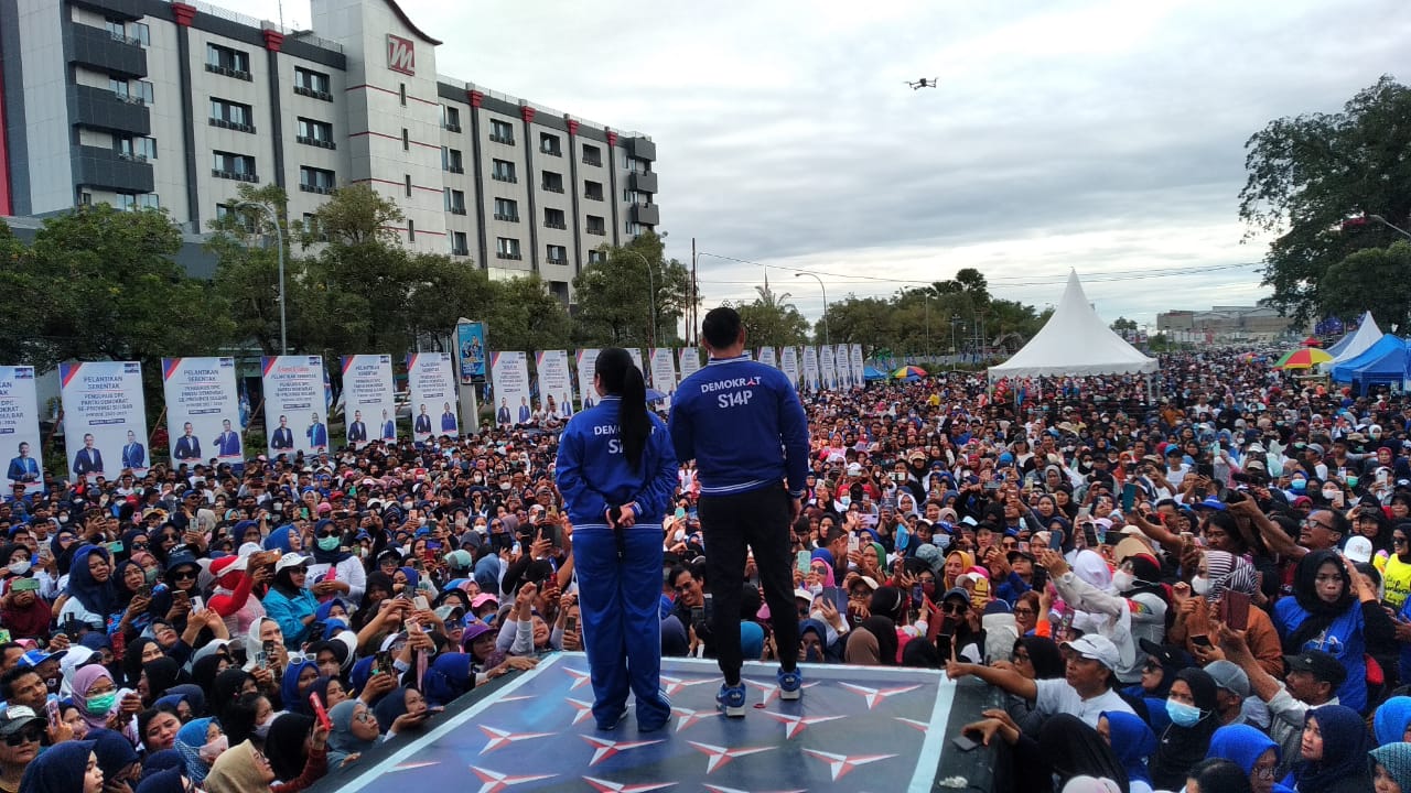 Mamuju, 8enam.com.-Puluhan Ribu warga Mamuju tumpah ruah padati Jalan Yos Sudarso, Kelurahan Binanga, Mamuju, Sulawesi Barat (Sulbar), untuk senam bersama Ketua Umum Srikandi Partai Demokrat, Annisa Pohan.