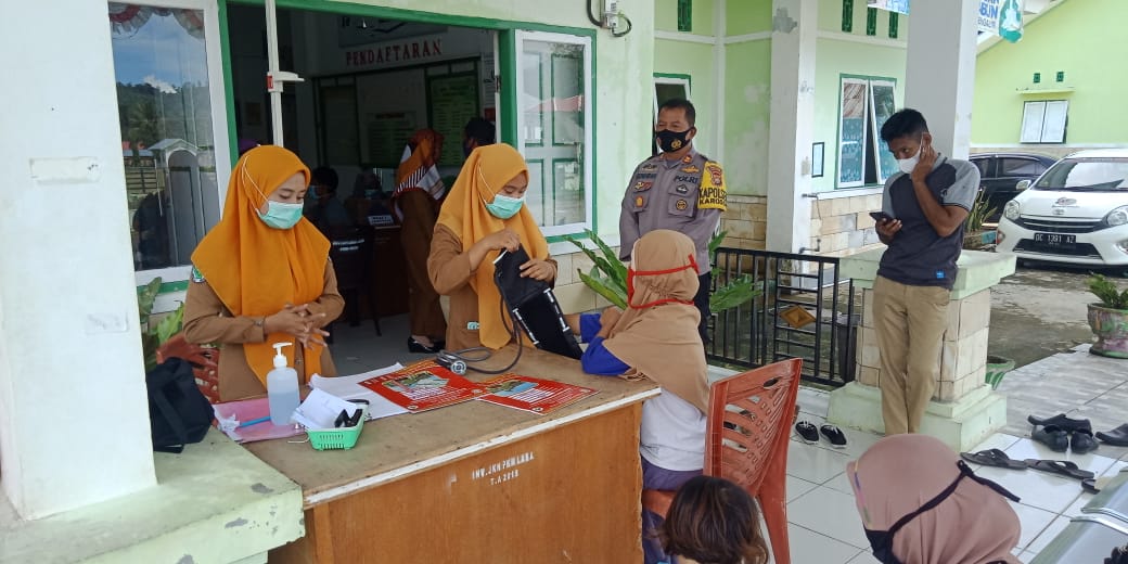 Dalam rangka mendukung program pemerintah percepatan penanganan Covid-19, terkait Program vaksinasi massal, Kapolsek Karossa IPTU Gunawan bersama anggota melaksanakan giat monitoring dan pemantauan pelaksanaan Vaksinasi massal Covid -19