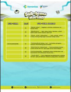 Sub-tema harian yang diangkat mencakup aspek kesehatan yang luas, seperti: