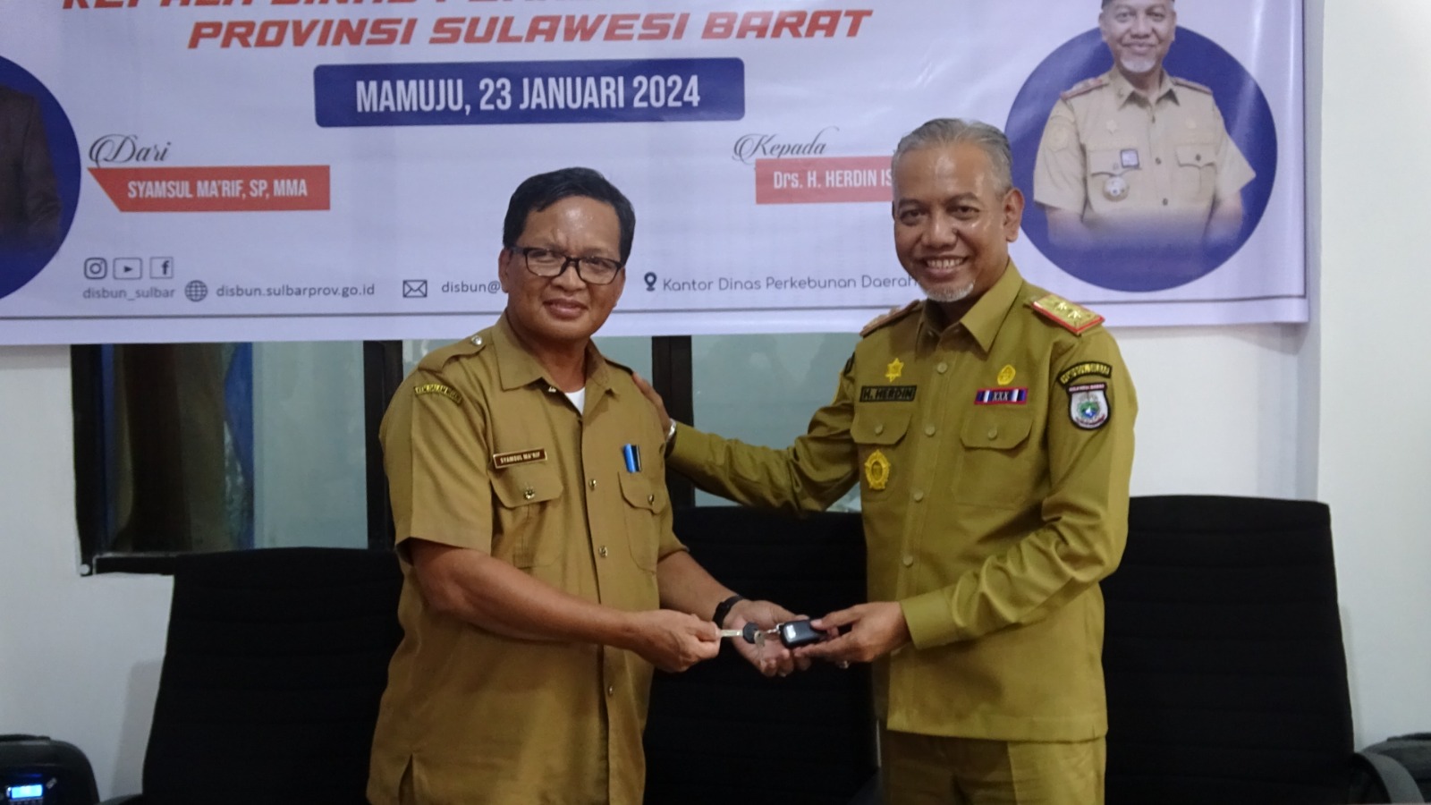 Syamsul Ma’rif selaku Kepala Dinas lama memberikan tongkat estafet kepemimpinan kepada Herdin Ismail, selaku Kepala Dinas yang baru.
