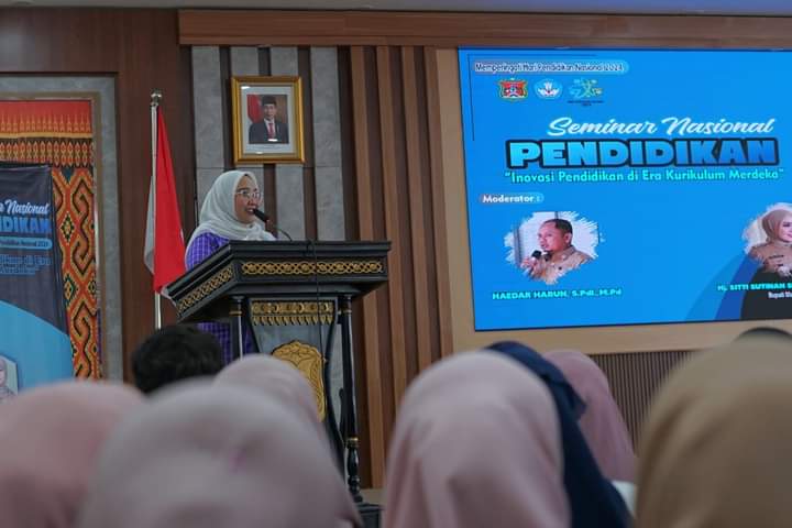 Mamuju, 8enam.com.-Di era Kurikulum Merdeka ini siapkah kita untuk bersaing dengan daerah lain yang telah lebih dulu maju? Pertanyaan kecil tersebut dilontarkan Bupati Mamuju, Sitti Sutinah Suhardi, saat menghadiri Seminar Nasional Pendidikan sebagai rangkaian memperingati Hari Pendidikan Nasional tahun 2024 yang diinisiasi oleh Dinas Pendidikan Pemuda dan Olahraga Kabupaten Mamuju yang dilaksanakan di Aula Kantor Bupati, Jl. Soekarno Hatta, Sabtu (4/5/2024).