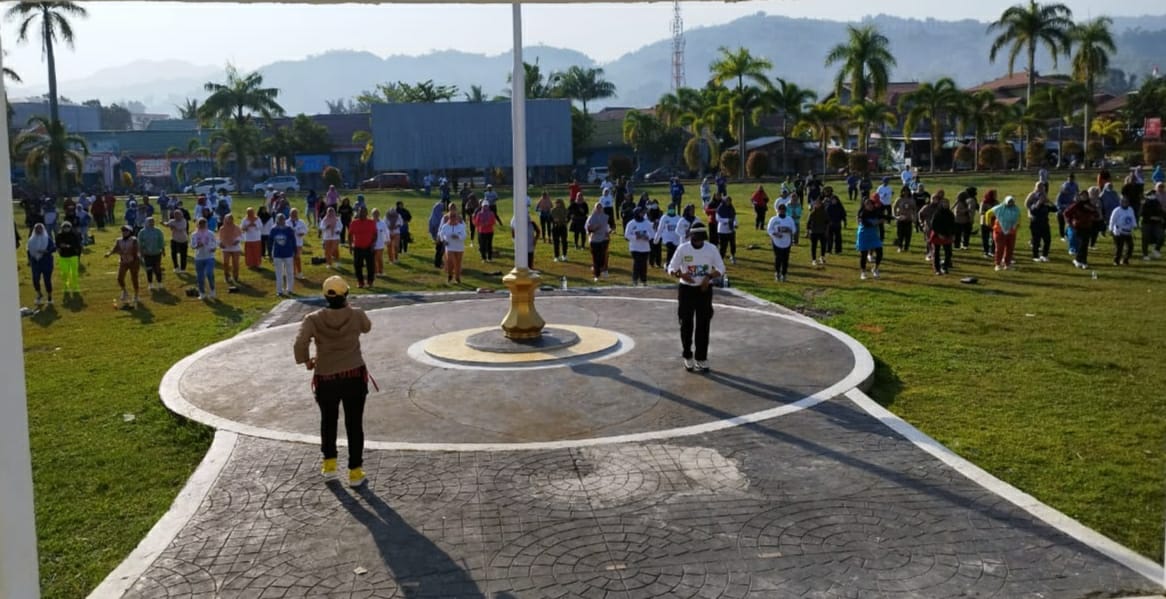 Mamuju, 8enam.com.-PT Surya Utama Group senam bersama Pemerintah Kabupaten Mamuju pada Jumat pagi, (13/10/2023).