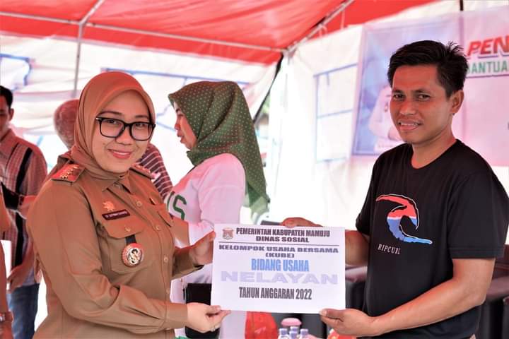Mamuju, 8enam.com.-Bupati Mamuju, Hj St Sutinah Suhardi serahkan bantuan Kelompok Usaha Bersama (Kube) secara simbolis kepada sejumlah kelompok usaha melalui Dinas Sosial Kabupaten Mamuju.