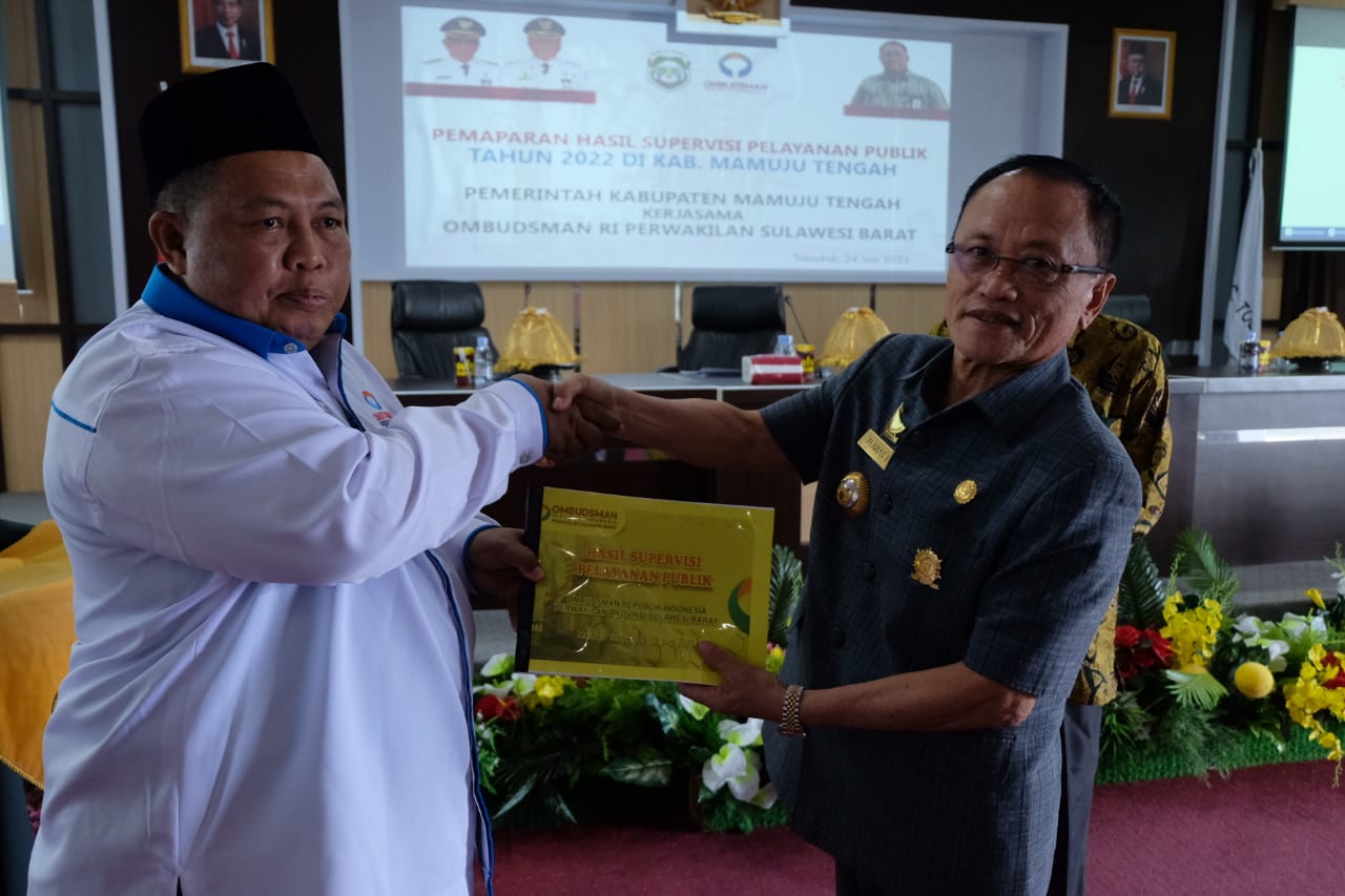 Penyerahan hasil supervisi pelayanan publik berlangsung di aula kantor Bupati Mamuju Tengah, Jum’at. (24/6/2022).