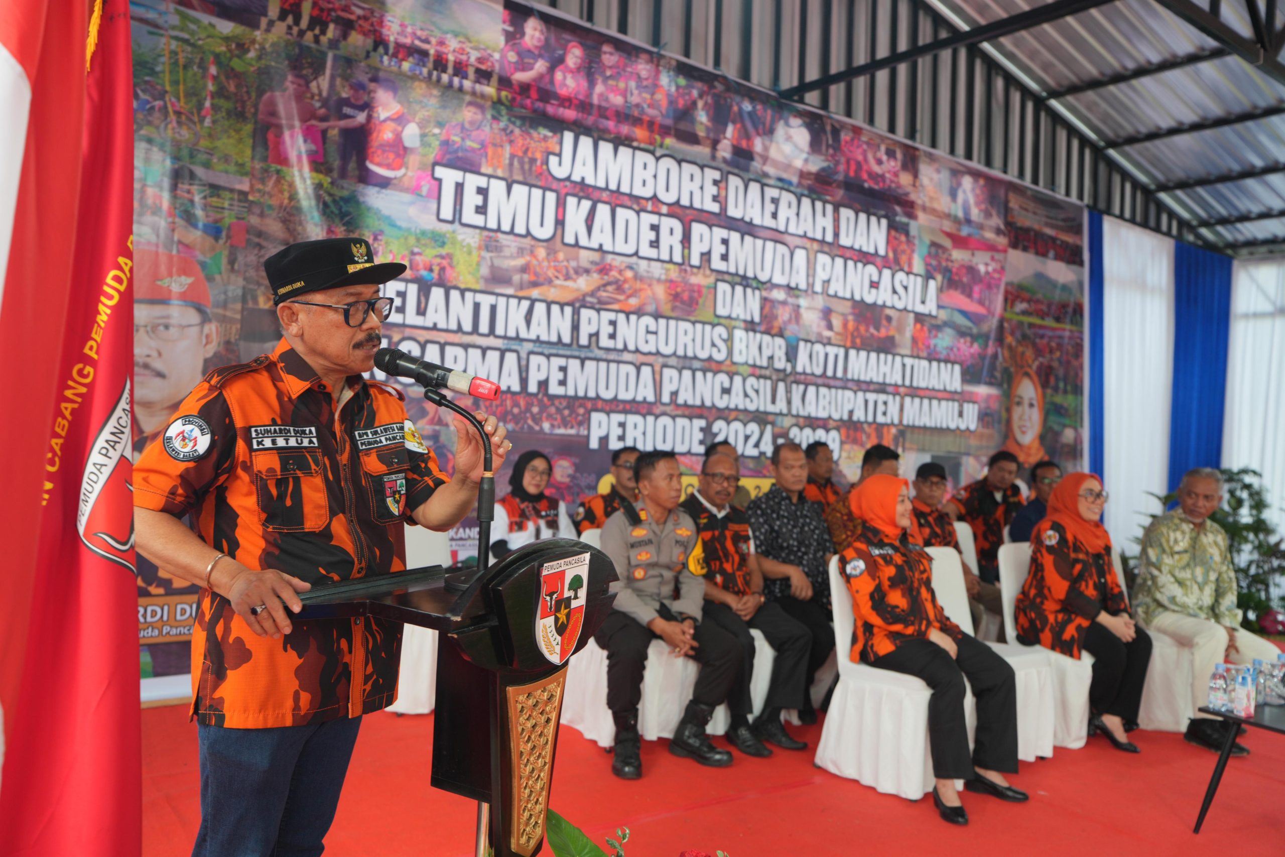 Mamuju, 8enam.com.-Ketua Majelis Pimpinan Wilayah (MPW) Pemuda Pancasila Sulbar, yang juga Gubernur Sulbar, Suhardi Duka (SDK), menghadiri Jambore Daerah dan Temu Kader Pemuda Pancasila sekaligus pelantikan pengurus BKPB, Koti Mahatidana, serta SAPMA Pemuda Pancasila Kabupaten Mamuju di Marasa Corner pada Jumat, 2 Mei 2025.