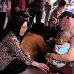 Selain itu Sutinah juga memberikan semangat kepada para korban saat ia menyapa satu persatu korban di lokasi pengungsian.