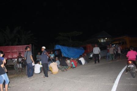 Karena tidak adanya tenda untuk beristirahat, khusus laki-laki terpaksa harus berkumpul di pinggir jalan poros, sementara yang perempuan istirahat di rumah warga di sekitar Tempat Pembuangan Akhir (TPA) Sampah. (Ra)