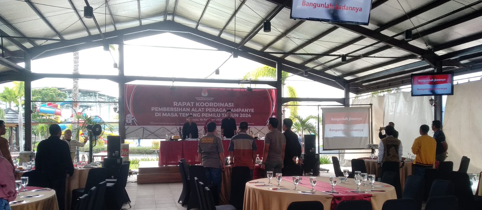“Semuanya tidak dibenarkan dalam bentuk apapun, semua APK harus dibersihkan termasuk akun-akun di Media sosial (Medsos). Kami minta kepada peserta Pemilu khususnya Caleg untuk menurunkan APK nya secara mandiri,” kata Ibnu Imat Totori saat memandu rakor tersebut.