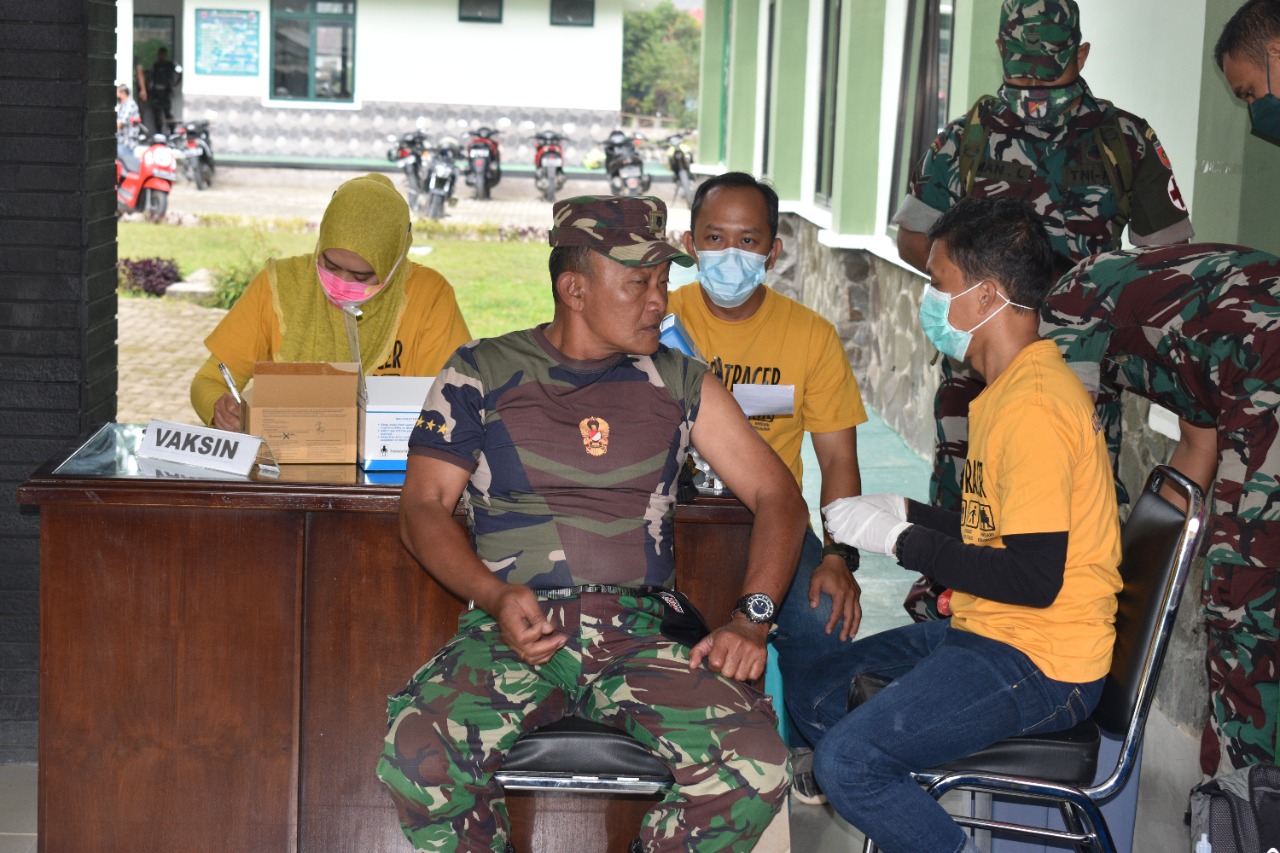 “Meskipun demikian Setelah divaksin bukan berarti sudah terbebas dari ancaman terinfeksi virus covid-19, sehingga personel tetap harus mematuhi protokol kesehatan dalam menjalankan tugas di wilayah,” tandas Dandim.