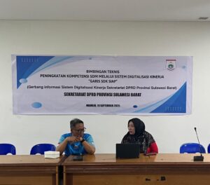 Mamuju, 8enam.com.-Sekretariat DPRD Sulawesi Barat (Sulbar) menggelar Bimbingan Teknis (Bimtek) “Garis SDK Siap” (Gerbang Informasi Sistem Digitalisasi Kinerja Sekretariat DPRD Sulbar) pada Jumat, 19 September 2025. Kegiatan ini bertujuan untuk meningkatkan kompetensi Sumber Daya Manusia (SDM) melalui digitalisasi kinerja, sejalan dengan visi Gubernur dan Wakil Gubernur Sulbar dalam mewujudkan tata kelola pemerintahan yang baik dan akuntabel.