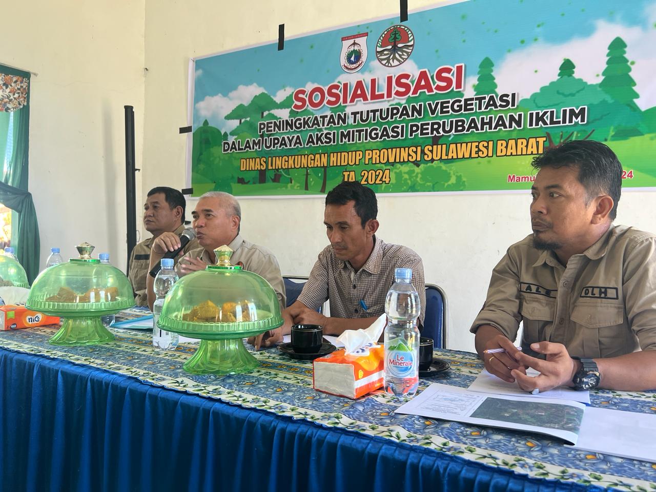 Sosialisasi peningkatan tutupan vegetasi dengan tanaman produktif dalam upaya aksi mitigasi perubahan iklim, dibuka secara resmi Kepala DLH Sulbar, Zulkifli Manggazali, didampingi Kabid. Pengendalian Pencemaran dan Kerusakan Lingkungan dan Kabid. Pengolahan Sampah, Limbah B3 dan Peningkatan Kapasitas serta dihadiri aparat desa dan kelompok tani.