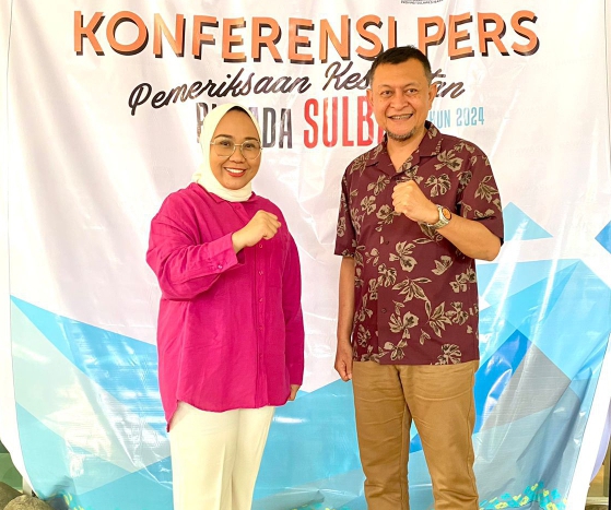 Makassar, 8enam.com.-Pasangan calon Bupati dan Wakil Bupati Mamuju, Sutinah Suhardi dan Yuki Permana (Tina-Yuki) mengikuti rangkaian tes kesehatan di RS Wahidin Sudirohusodo, Makassar, Jumat, (30/8/2024) sore.