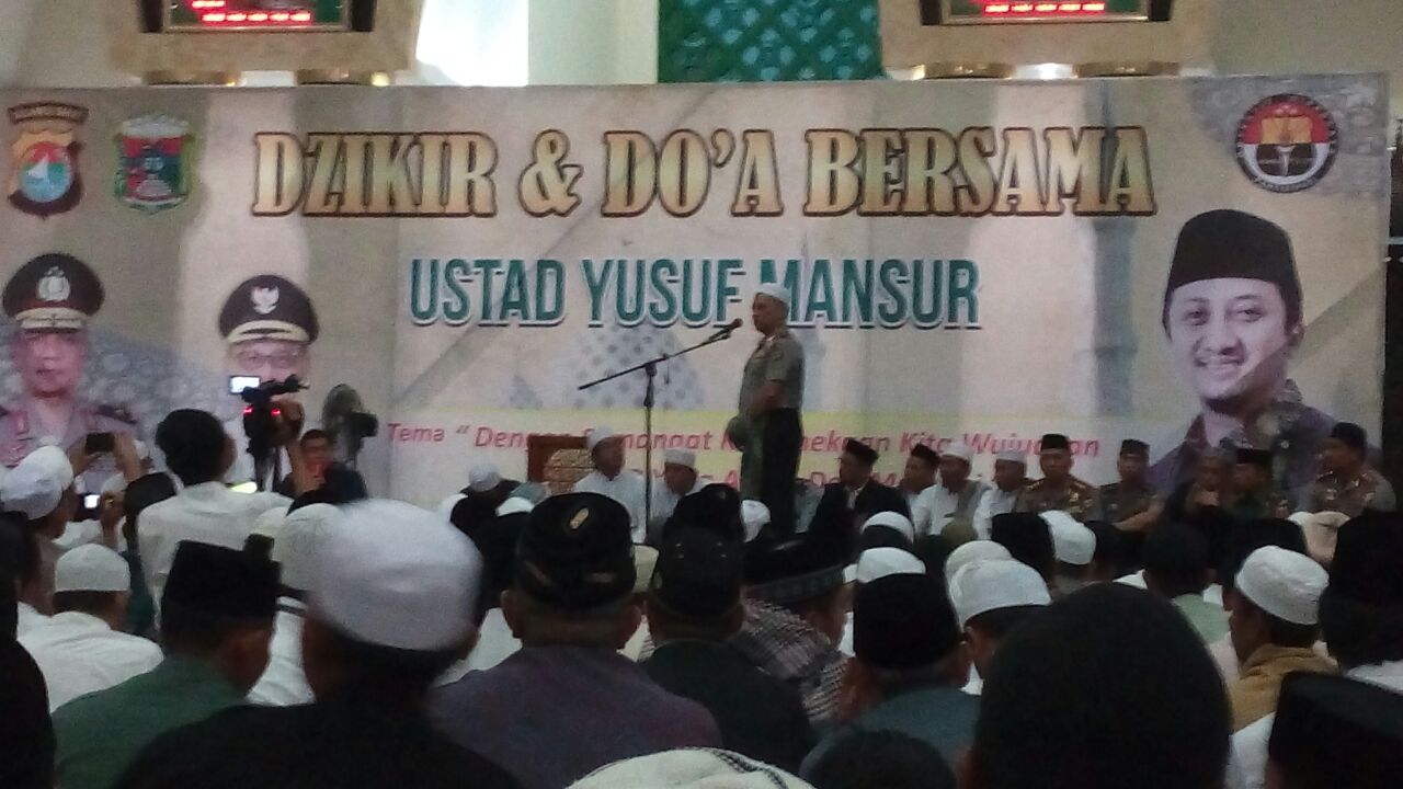 Mamuju, 8enam.com.-Guna mewujudkan Sulbar aman dan Malaqbi, Polda Sulbar, TNI dan Pemerintah Daerah (Pemda) Mamuju gelar Dzikir dan Do’a bersama ustadz Yusuf Mansur, Minggu (29/10/2017).